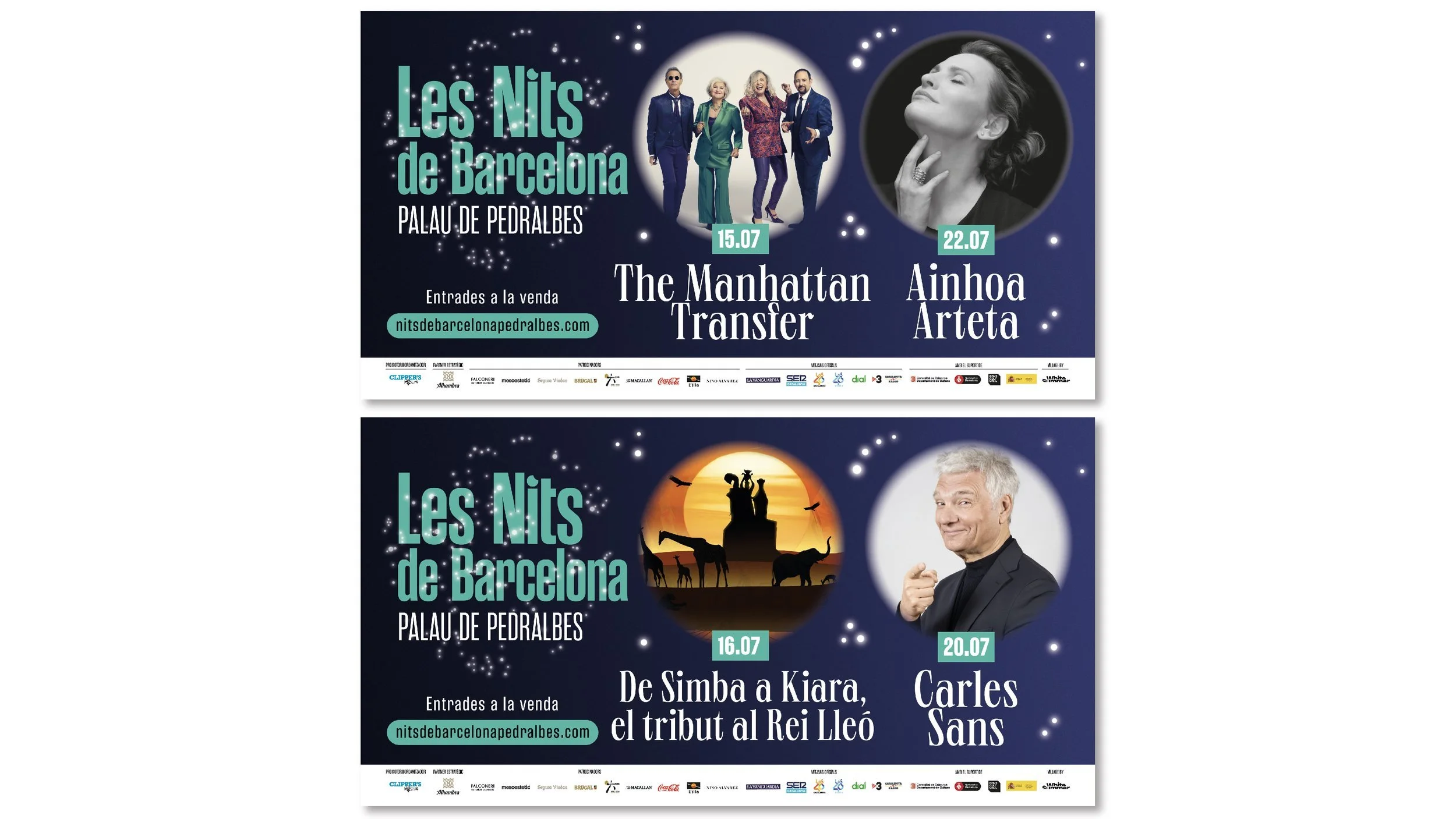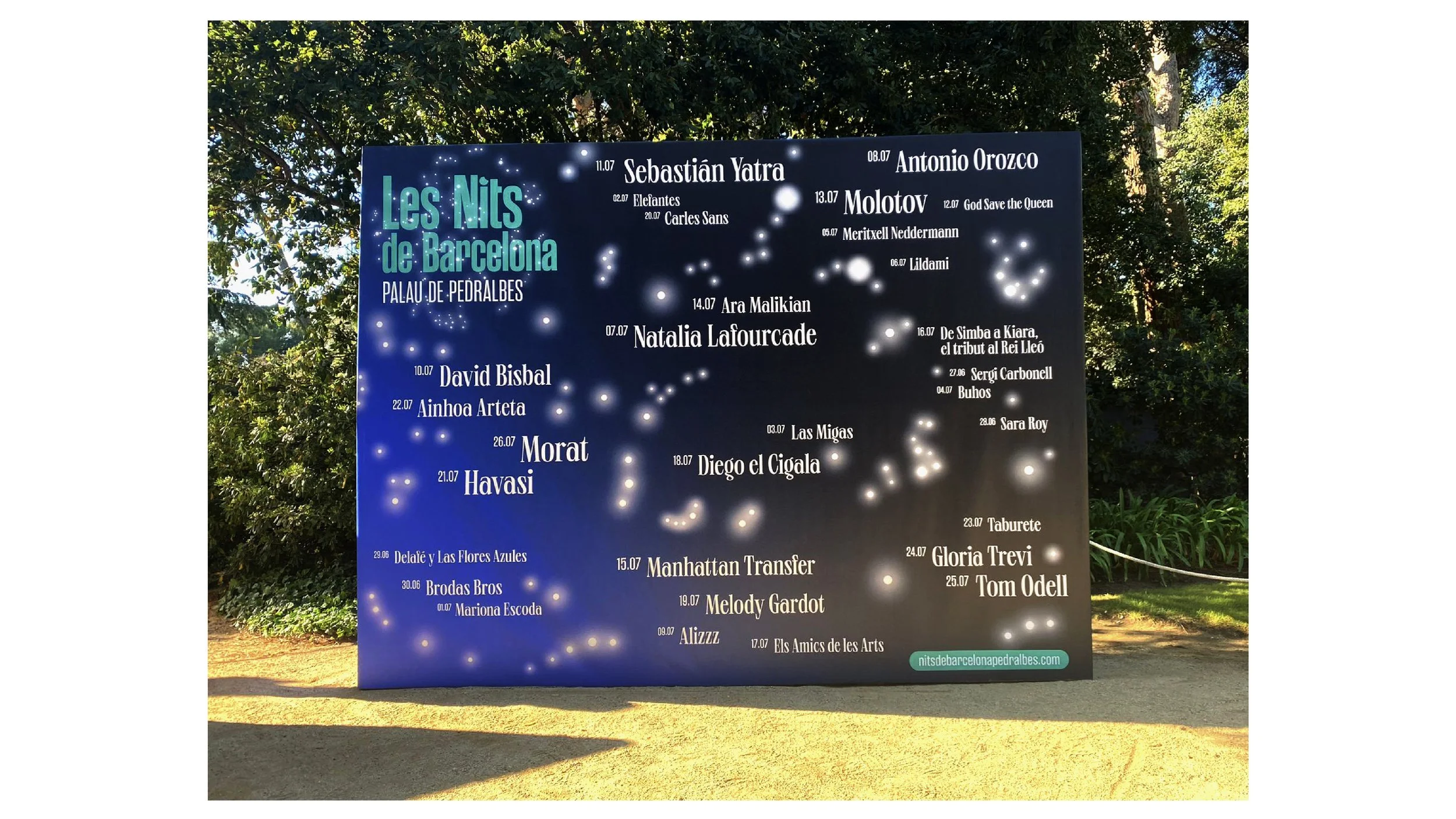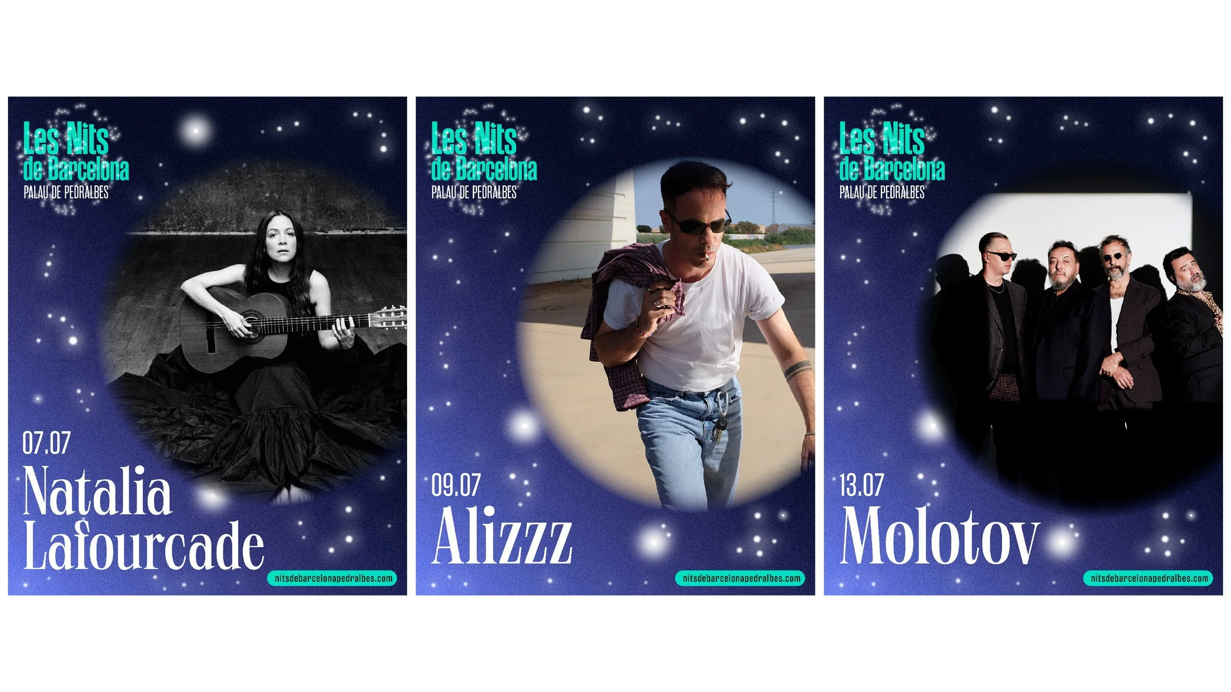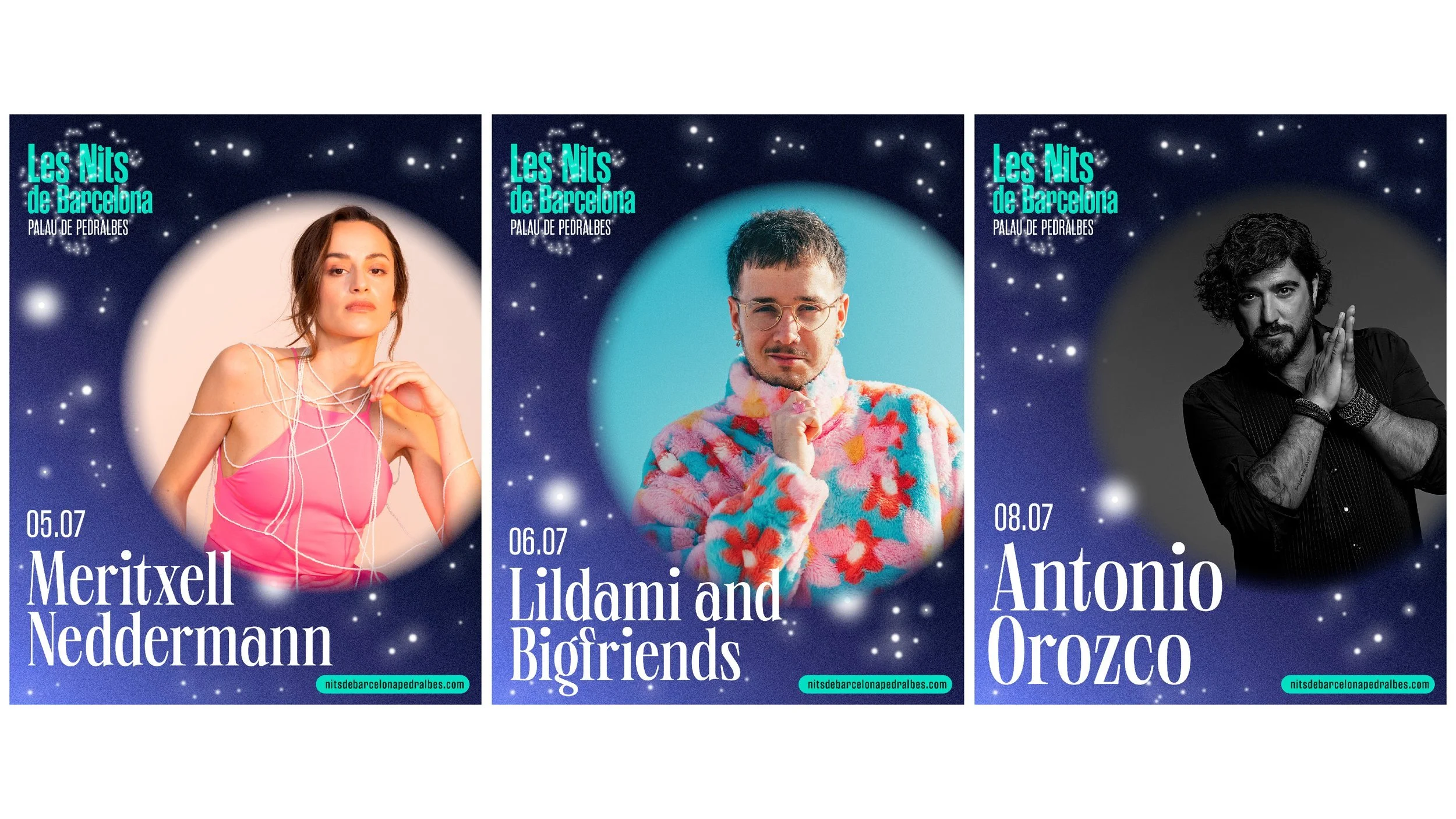 Les Nits de Barcelona is a music festival to enjoy in a unique setting, the gardens of Pedralbes. Les Nits de Barcelona or Nits de Barcelona plays with the concept of starry nights in the city and with constellations, which are groupings of stars. We create the idea od the stars in the sky and the stars that come to the festival, the artists.