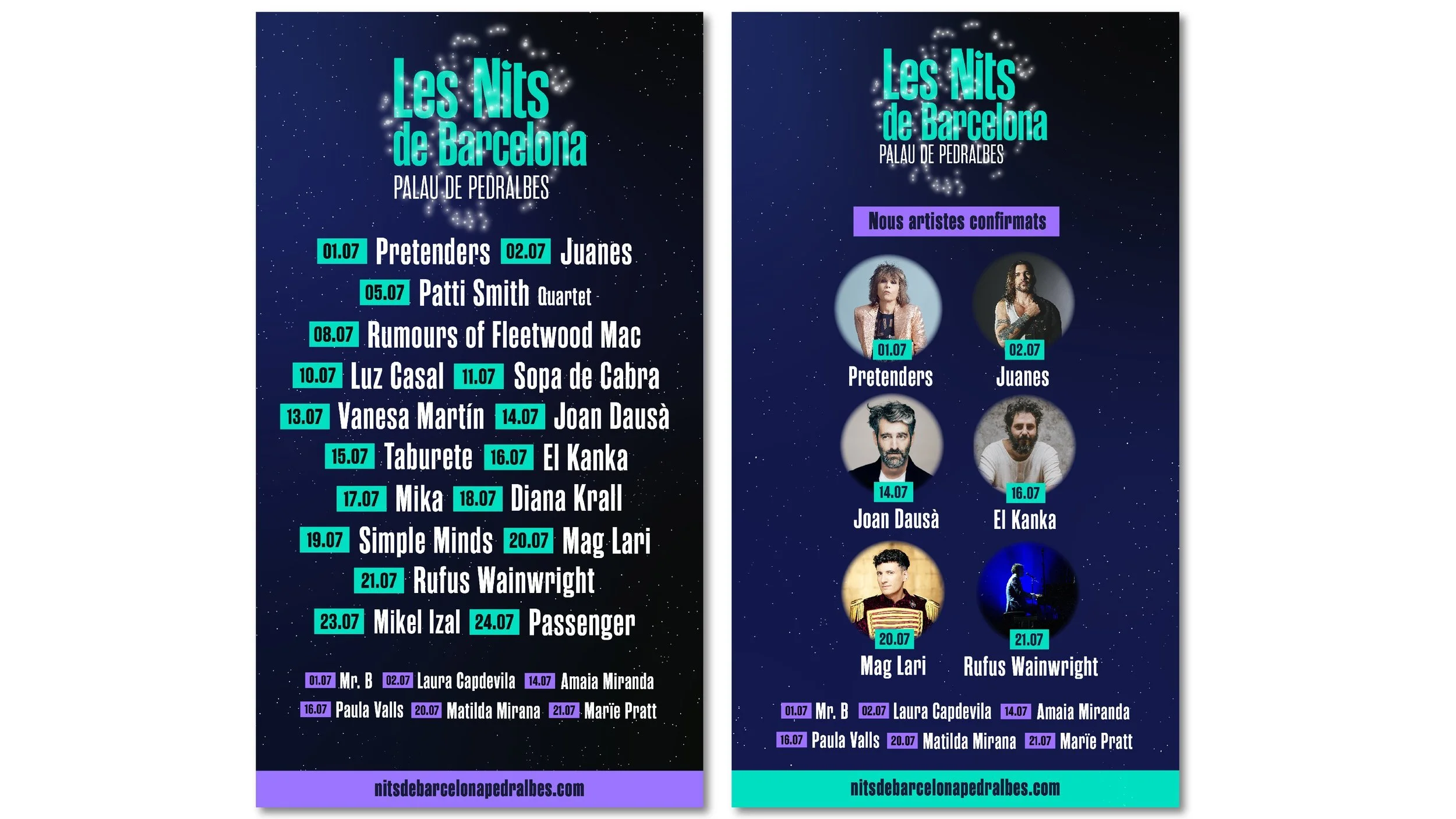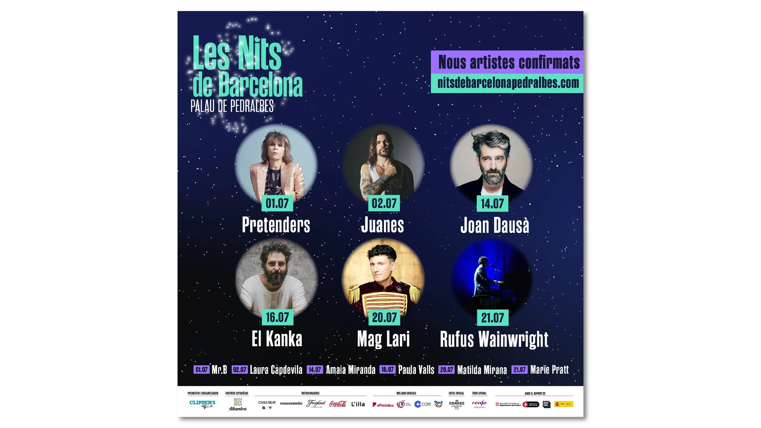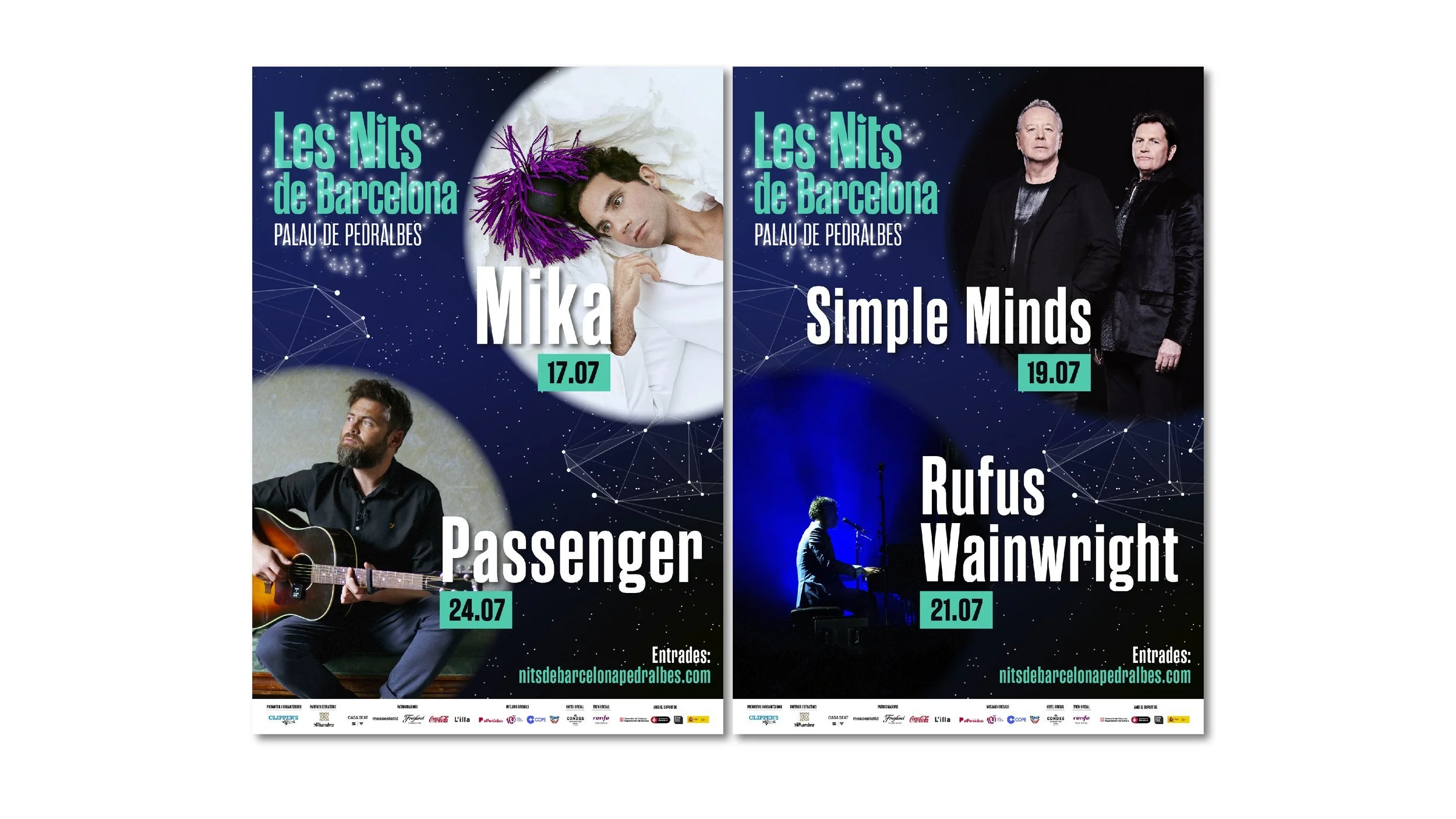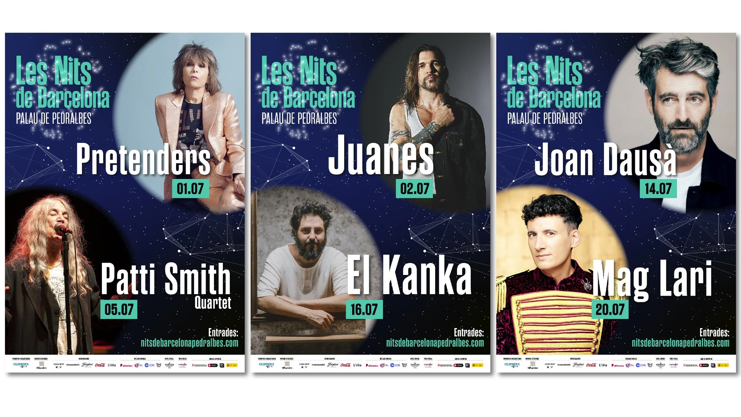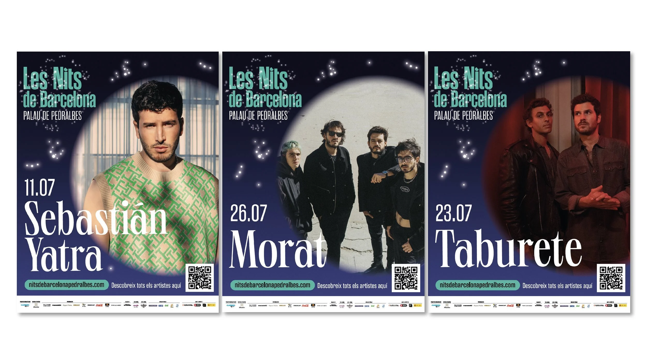 Les Nits de Barcelona is a music festival to enjoy in a unique setting, the gardens of Pedralbes. Les Nits de Barcelona or Nits de Barcelona plays with the concept of starry nights in the city and with constellations, which are groupings of stars. We create the idea od the stars in the sky and the stars that come to the festival, the artists.