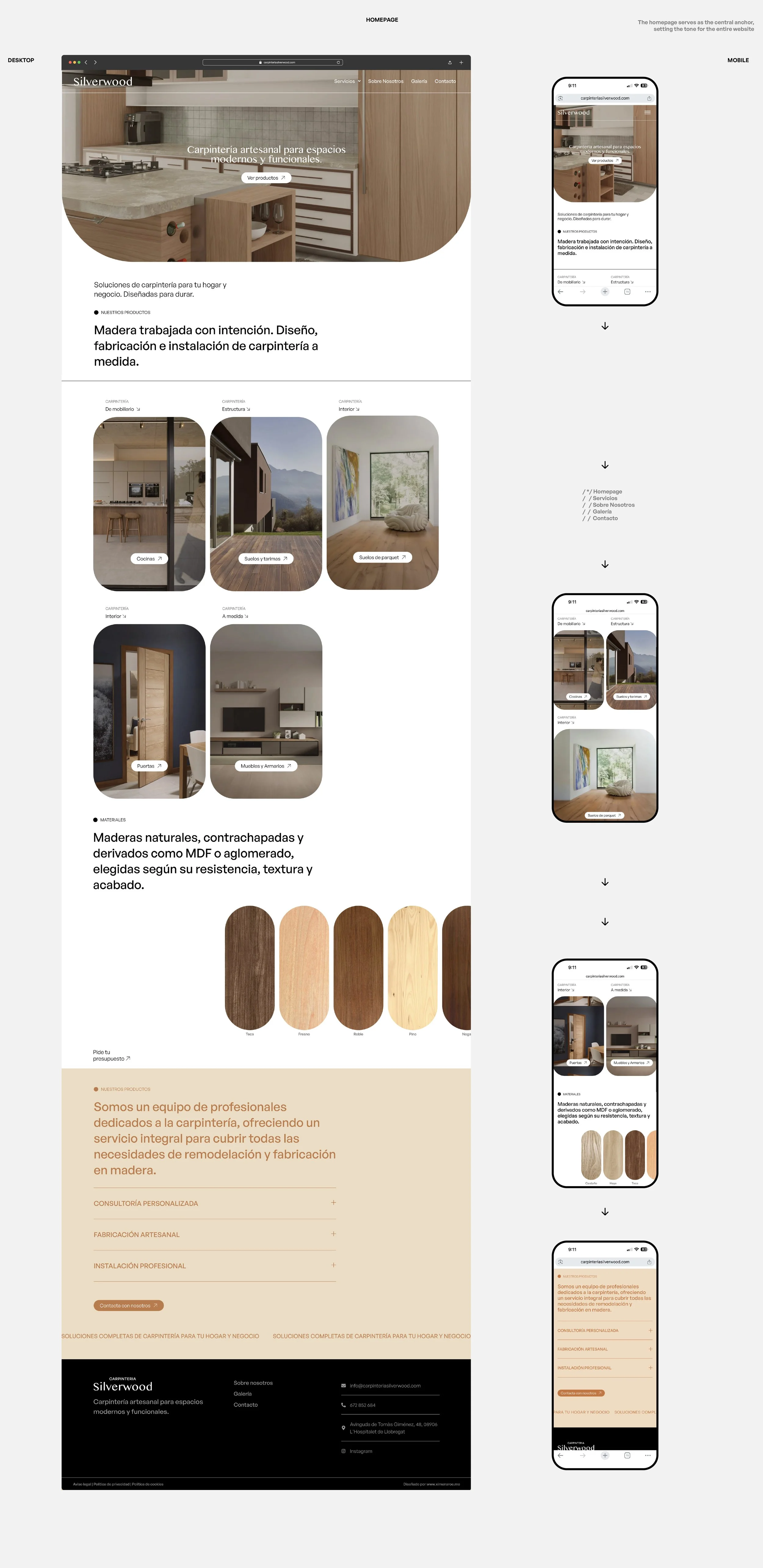 Website design for Silverwood, focused on translating craftsmanship into a clean and contemporary digital experience. The project highlights materiality, attention to detail, and a refined visual system that elevates the brand’s positioning while ensuring clarity and usability.