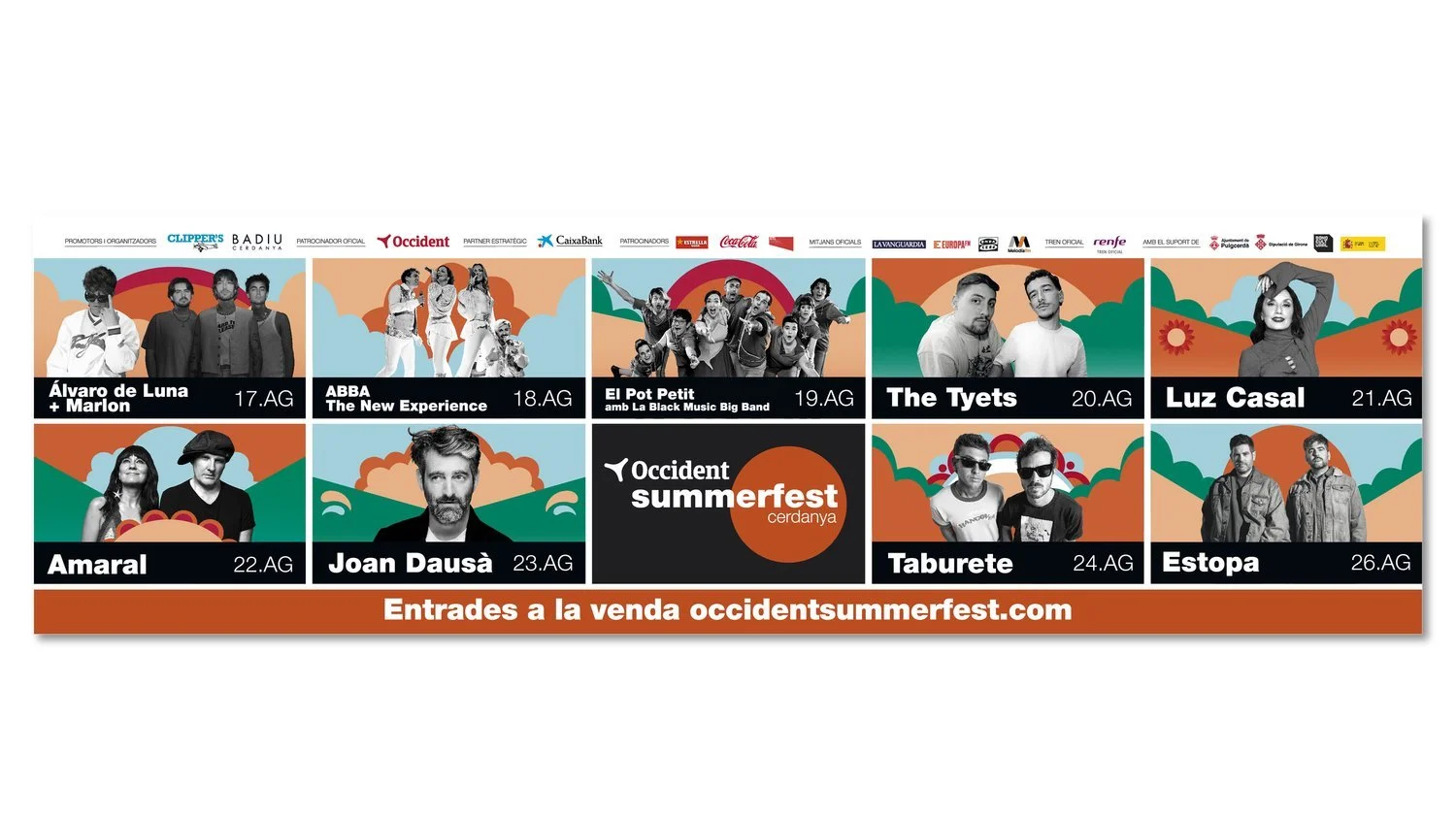 Occident Summerfest Cerdanya is located in the pyrynees. It is a unique place sorrounded by mountains. The concept is all about music, location and experience. The strategy was to convert the music festival into a music experience. I played with colors that represent the nature of the place putting the experience as the center of everything. I played with illustrations and used color and contrast as a key element to create dynamism.